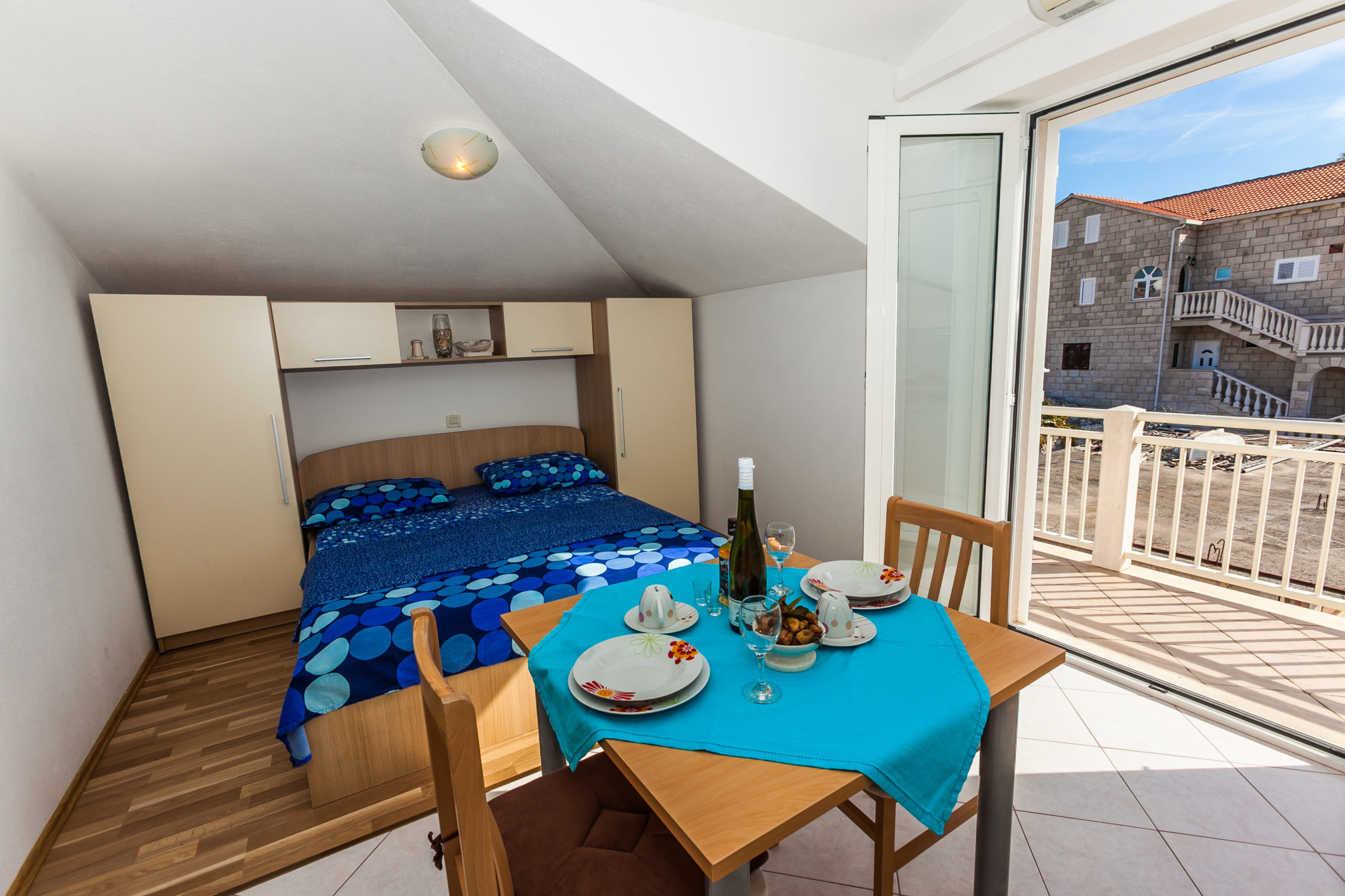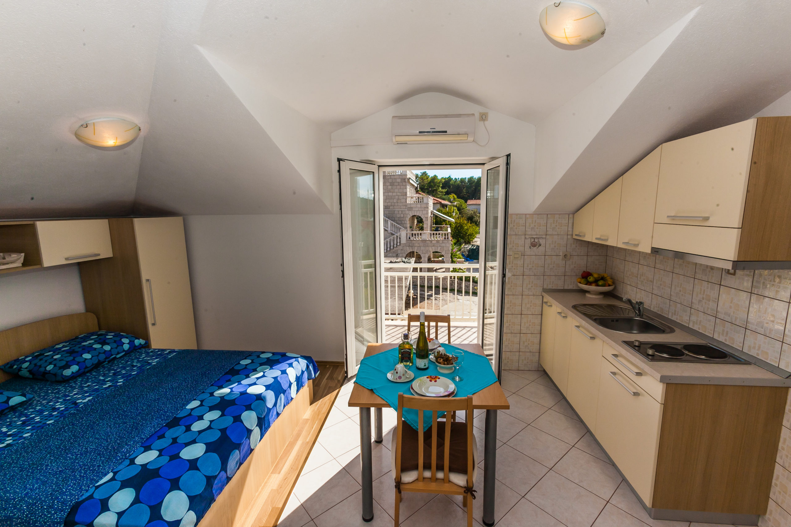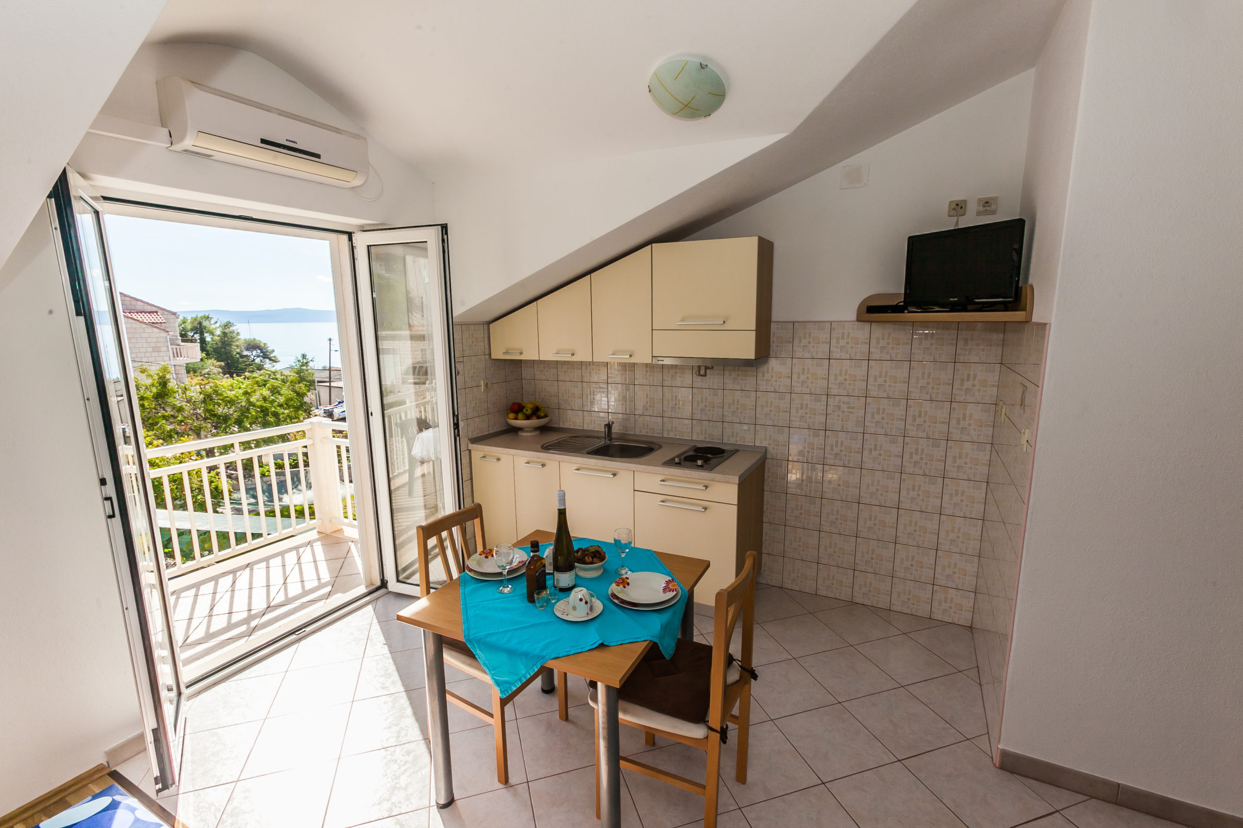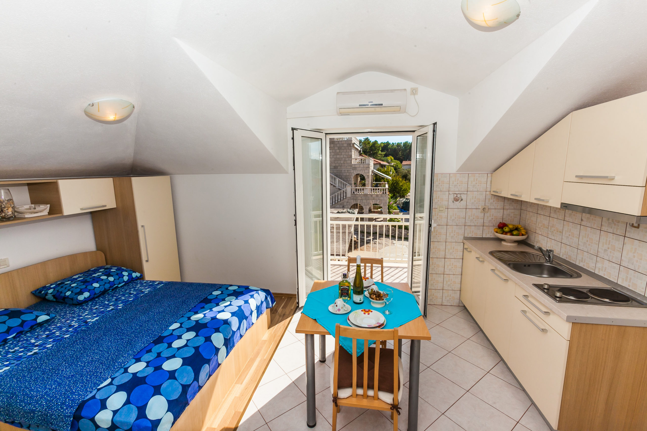 Apartman sadrži kuhinju, dnevni boravak i sobu s bračnim krevetom. Naravno tu je i kupaonica. Nalazi se na prvom katu kuće.